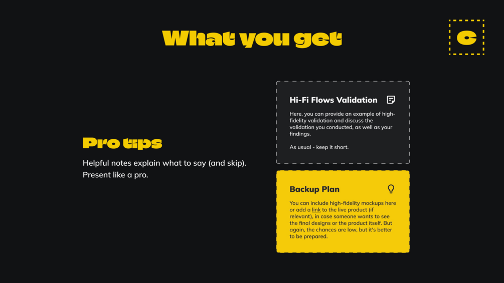 A product design case study template in Figma. Built to impress - structure, tips, and polish, without the fluff.
