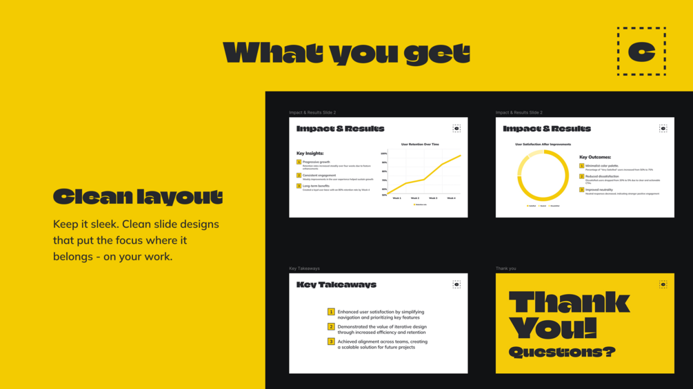 - Clean layout – your work stays in the spotlight